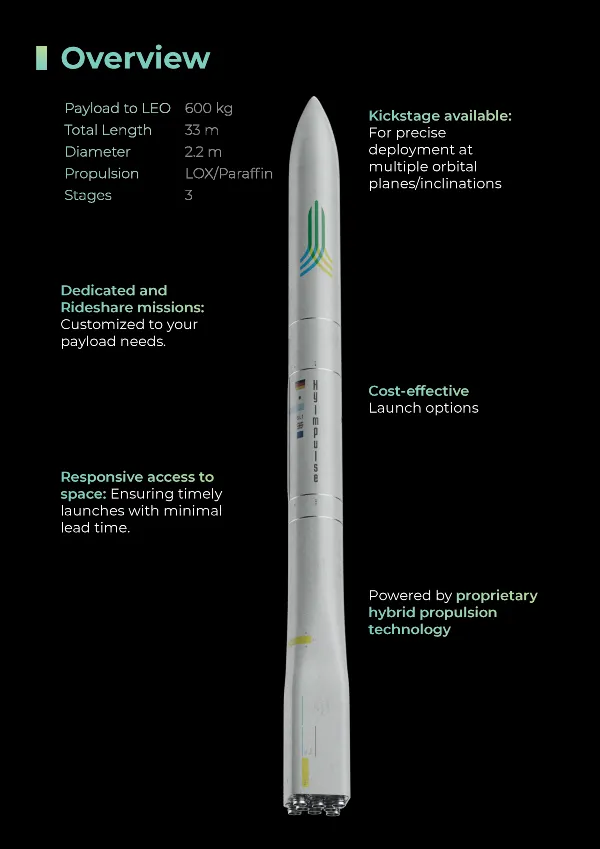 حققت HyImpuse إطلاق صاروخ شبه مداري في عام 2024 بصاروخها SR75. وتخطط للإطلاق المداري الأول للصاروخ SL1 في عام 2027.