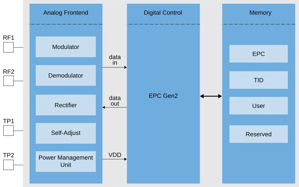 حساسية القراءة والكتابة هي -26.2dBm و-23dBm على التوالي. يمكن كتابة 32 بت في 1.9 مللي ثانية.