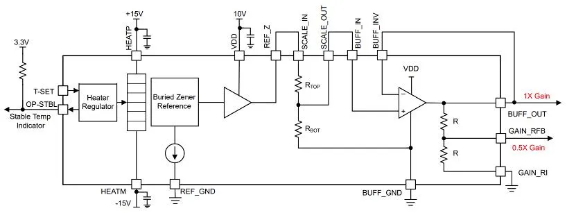 يقوم REF81 الجديد بموازنة جهد الخرج المعتمد على Zener عن طريق إضافة مخزن مؤقت ومكبر صوت دقيق إلى REF80، داخل نفس الحزمة المثبتة على السطح الخزفية المغلقة بإحكام مقاس 9 × 9 مم والتي يمكن التحكم في درجة حرارتها.