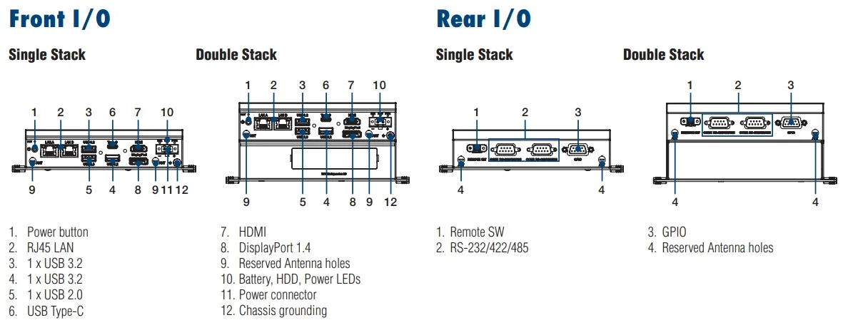 على وجه التحديد، فهو يشتمل على ثلاث فتحات M.2 مدمجة (B-Key وE-Key وM-Key) لاستيعاب الوحدات اللاسلكية وأجهزة تخزين NVMe وواجهات الاتصال الميدانية. وهذا يعني أنها بدون مروحة مع هيكل خالي من الكابلات.