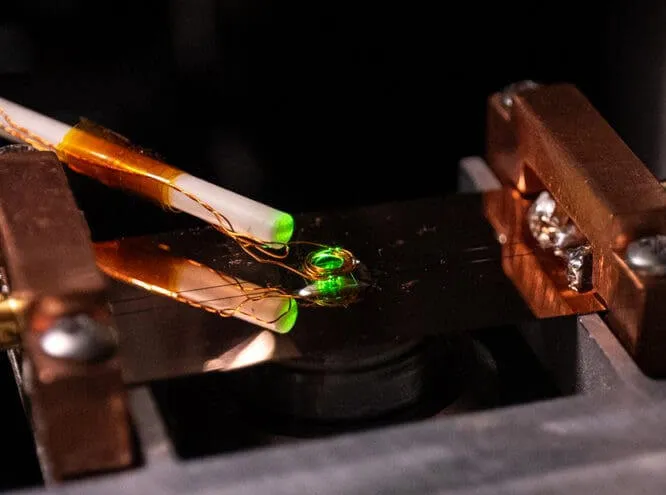هذه هي أجهزة استشعار “مركز شغور النيتروجين”، حيث يمكن فحص ذرة النيتروجين من بين مليار ذرة كربون في بلورة الماس للكشف عن الظروف المحلية