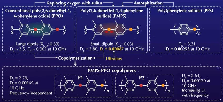 من خلال استبدال الأكسجين بالكبريت في PPO ، أنشأ الباحثون PMPs-Poly (2،6-dimethyl-1،4-phenylene sulfide) ، ولتحديد دور الكبريت ، قاموا أيضًا بتسمية بوليمرات PMPS-PPO مع تسلسلات مختلفة من الكبريت والأكسجين ، وسموها “P1” و “P2) (انظر بيئامامامامامامامامامامامامامامامامامامامامامامامامامامامامامامامامامامامامامامامامامامامامامم مختلفة.